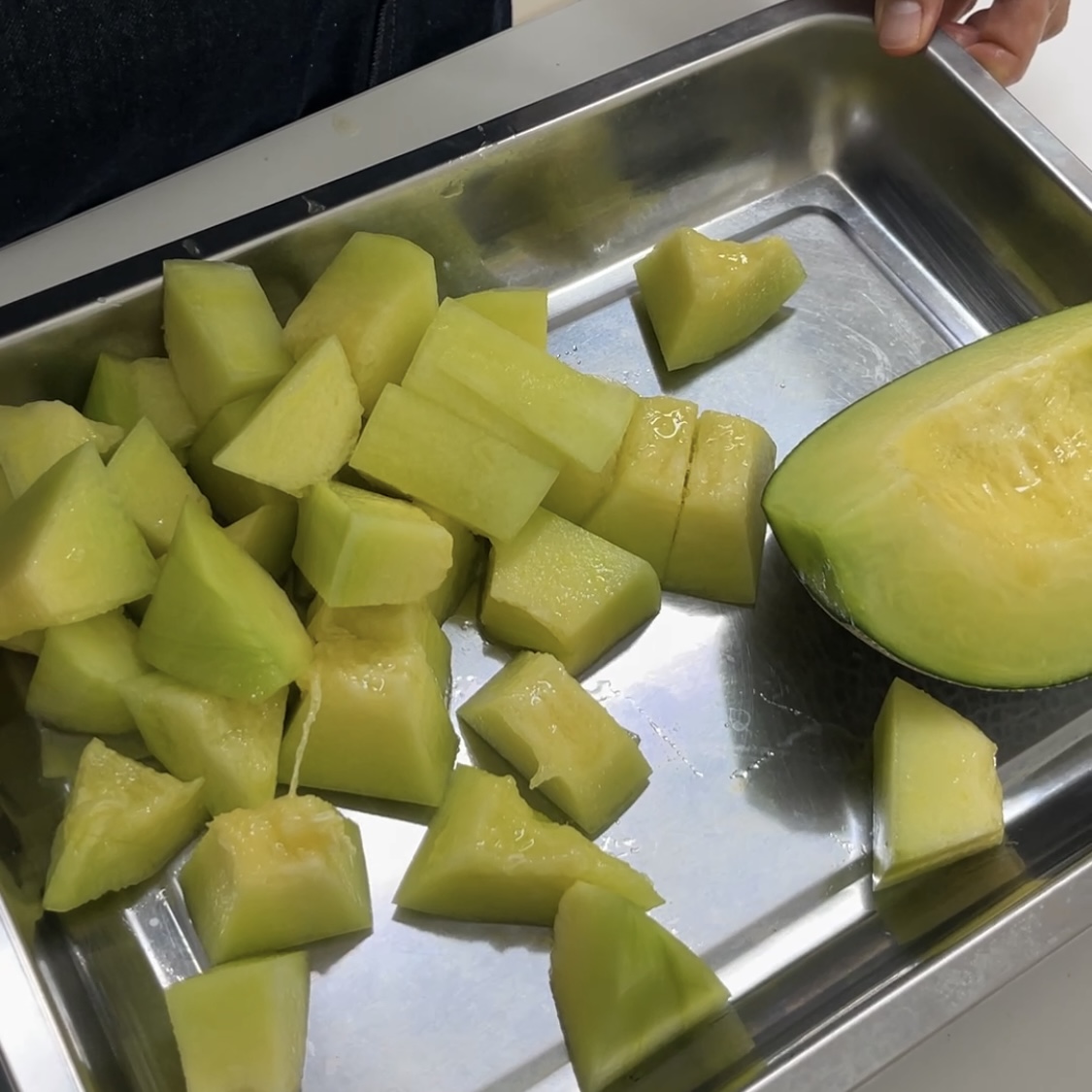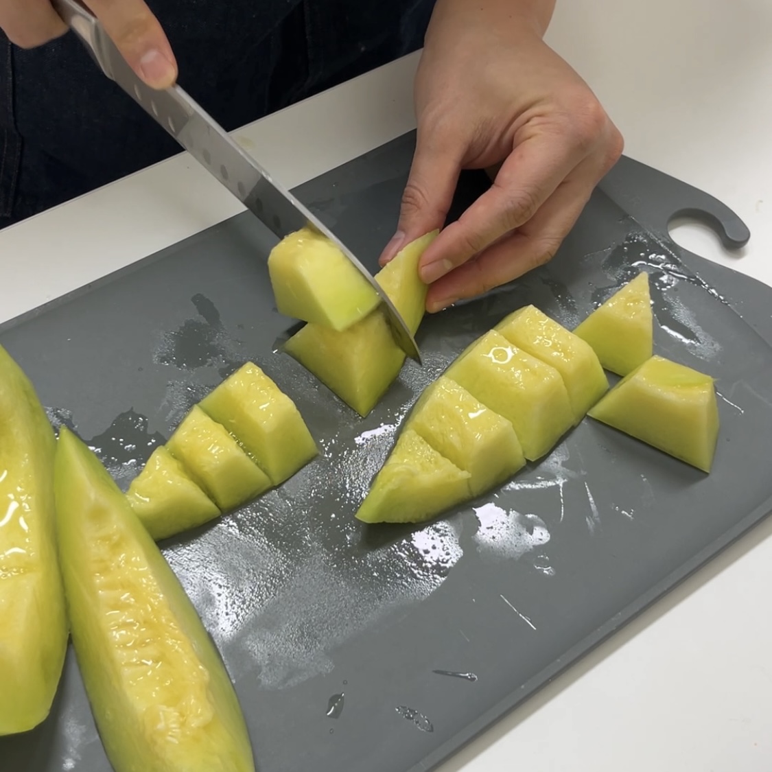 멜론은 반으로 자르고 가운데 씨는 다 빼줍니다.