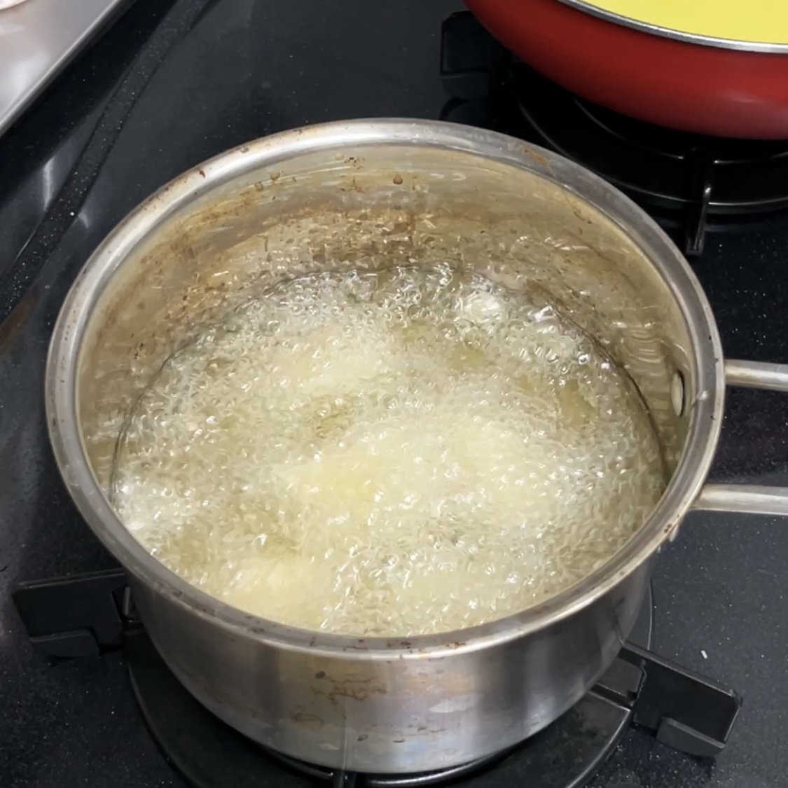 냄비에 기름을 넣고 멜론을 튀기기 시작합니다.