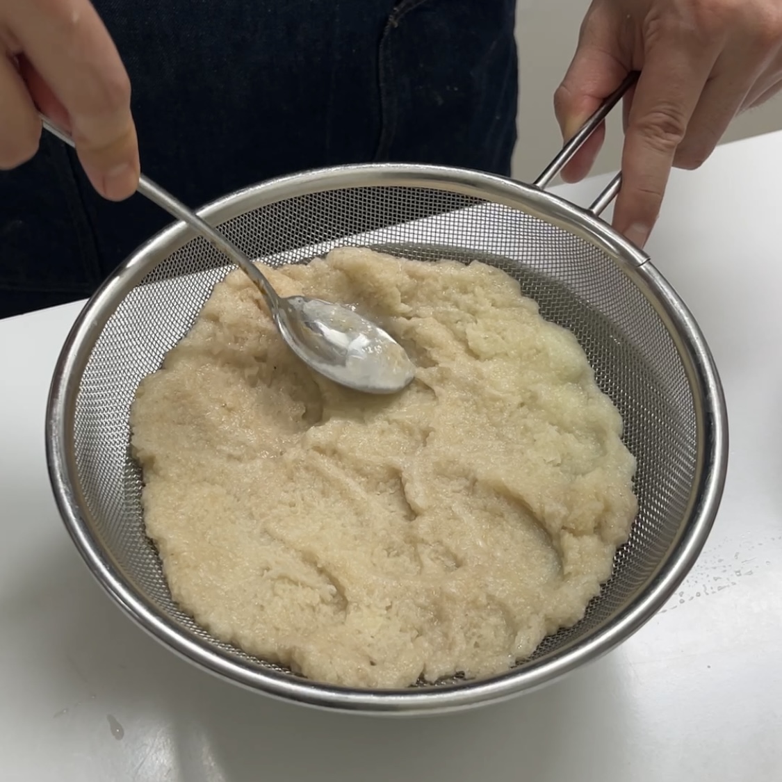 간 감자를 채에 한번 걸러서