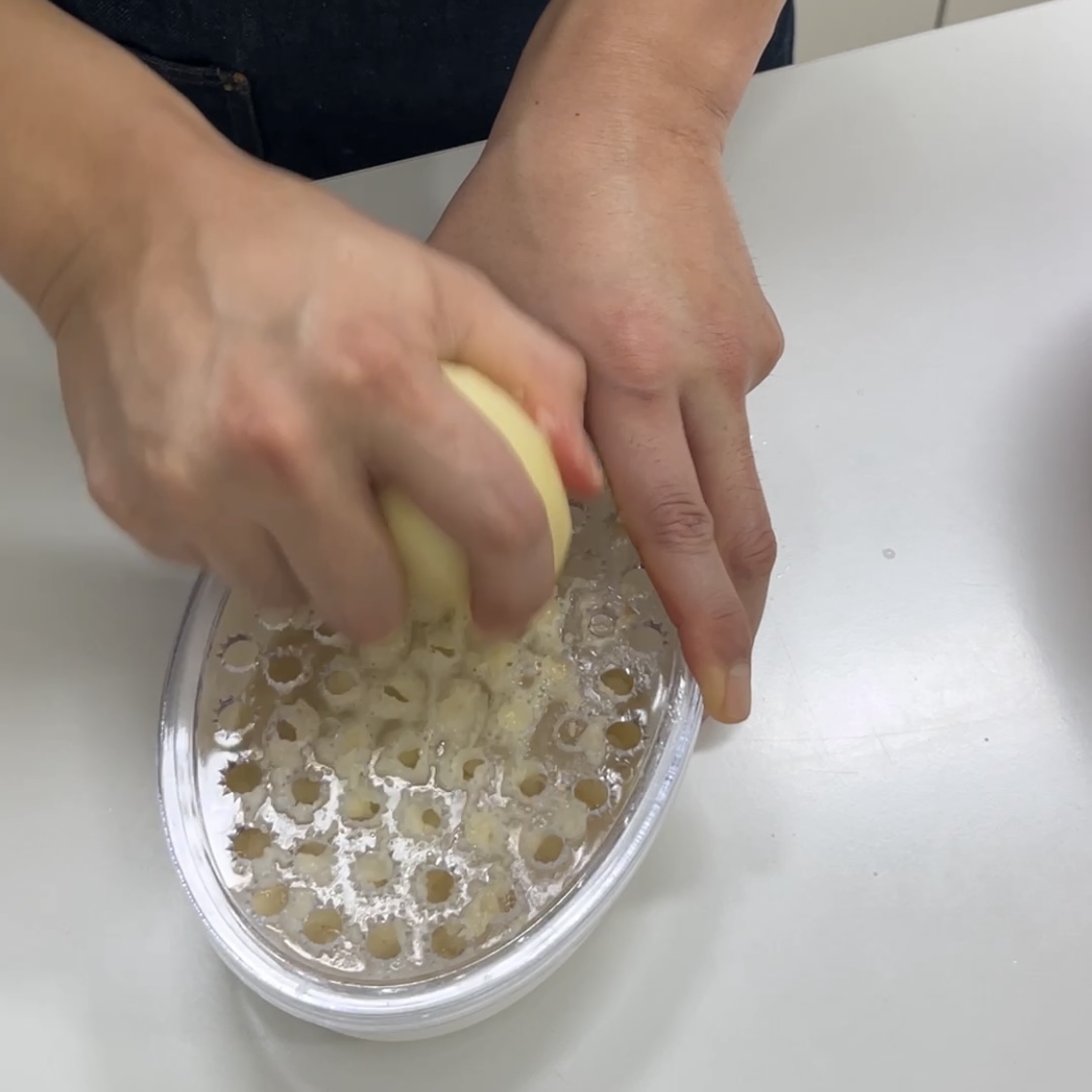 다음은 강판에 감자를 갈아주세요.